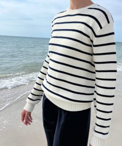 Brandy Melville Women’s Brianna Cotton Thick Stripe Sweater | Navy Blue And Dark Green Stripes