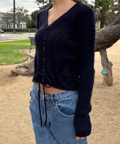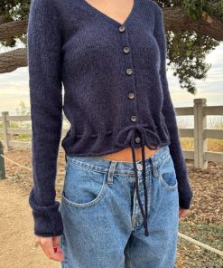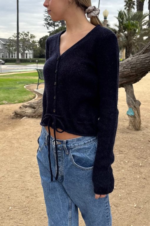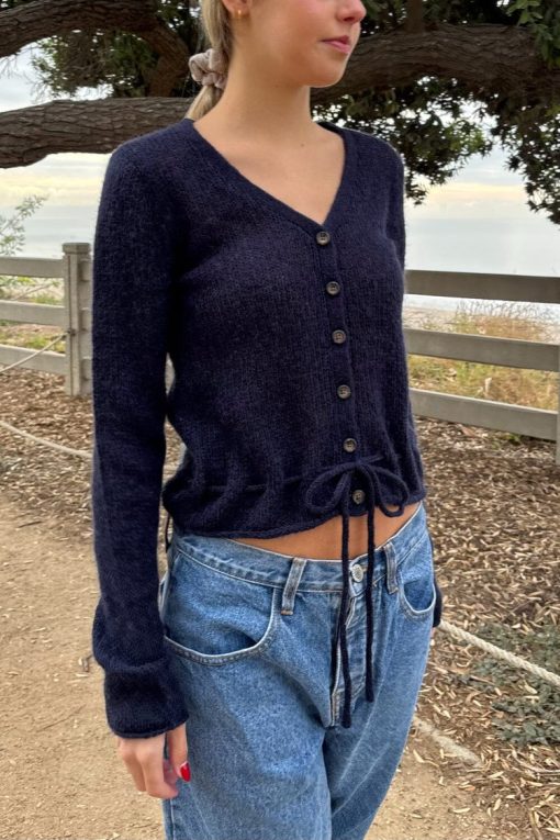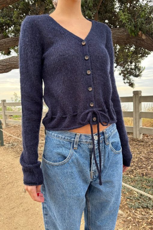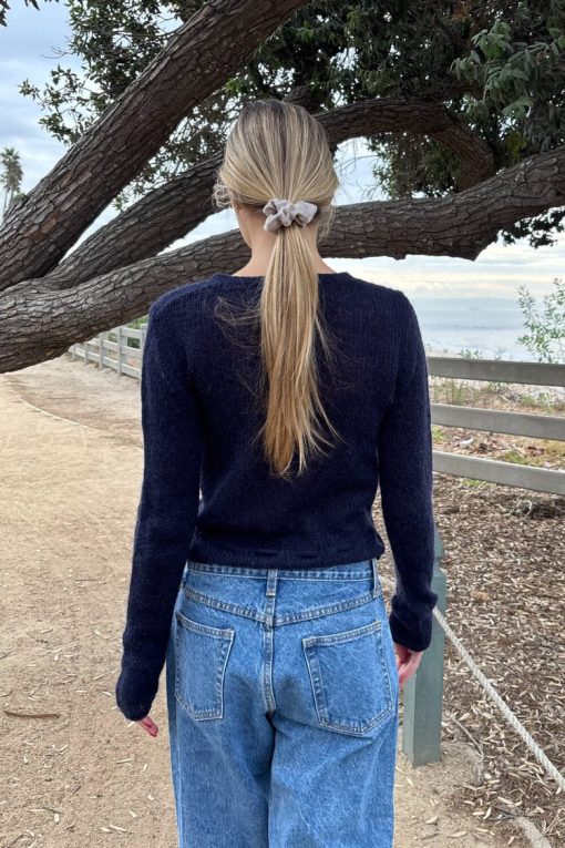 Brandy Melville Women’s Andi Mohair V-neck Sweater | Navy Blue