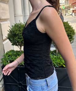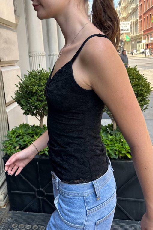 Brandy Melville Women’s Archie Floral Lace Tank | Black
