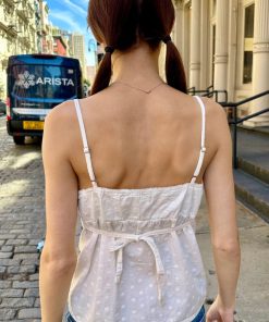 Flowy tank top with v-neck, floral details, adjustable straps, and tie in the backFabrics: 80% Polyester, 20% CottonMeasurements: length: 16″ (40cm) , bust: 13″ (33cm) Made in: China