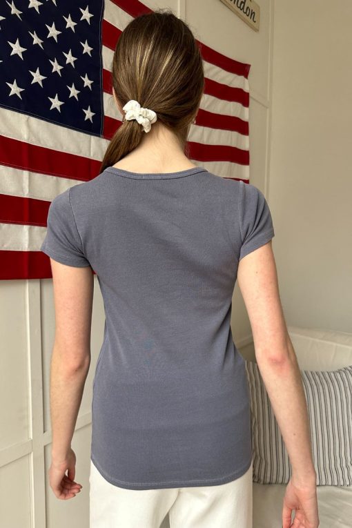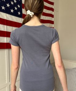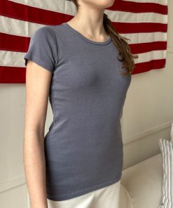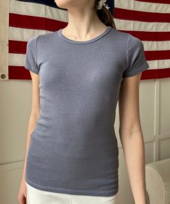 Soft, fitted, basic tee with a crewneck collar.Fabrics: 96% cotton, 4% spandexMeasurements: 19″ (48 cm) length, 15″ (38 cm) bustMade in: China