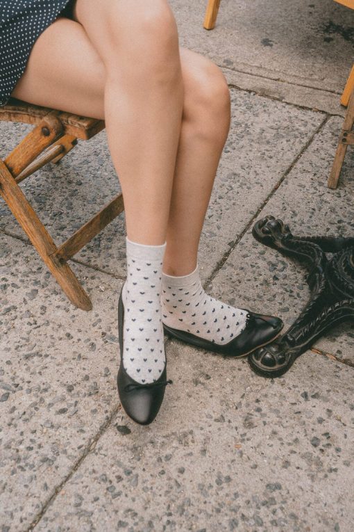 Soft grey socks with navy hearts.All accessories are final sale.Fabrics: 80% cotton, 20% spandexMeasurements: One sizeMade In: Vietnam
