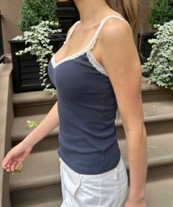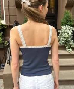 Basic fitted, scoop-neck cotton tank top with white lace trimming.Fabrics: 100% cottonMeasurements:17″ (43 cm) length, 11″ (28 cm) bust Made in: Europe