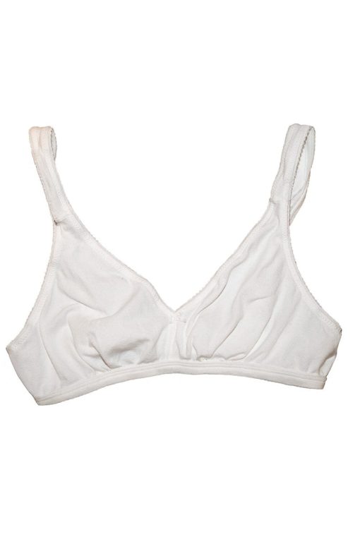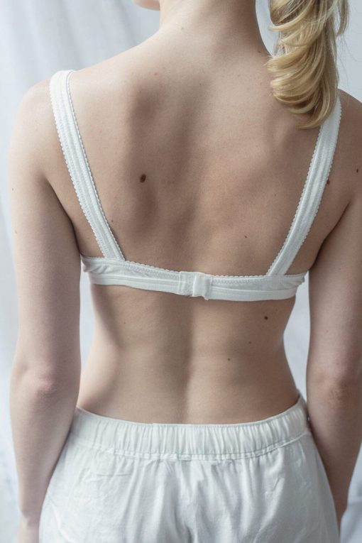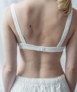 White bra with scalloped trim and straps, white bow, a seam under the bust and hook-and-eye closure.All intimates are final sale.Fabrics: 100% cottonMeasurements: 12″ (31 cm) length, 13″ (33 cm) bust Made in: Europe