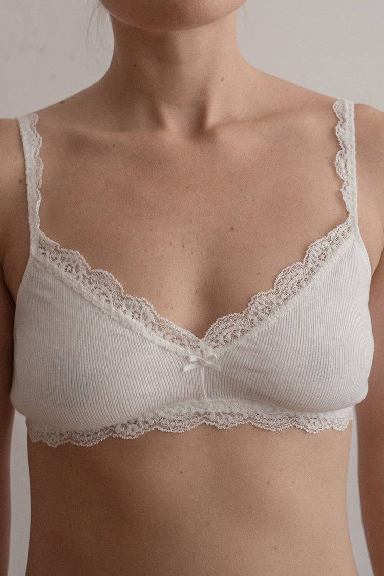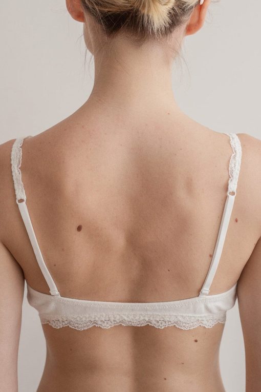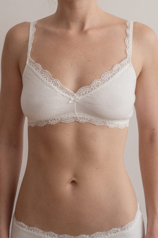 White bra with lace, bow, adjustable straps.All intimates are final sale.Fabrics: 100% cottonMeasurements: 12″ (31 cm) length, 13″ (33 cm) bust Made in: Europe