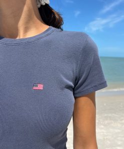 Brandy Melville Women’s Loreen American Flag Top | Faded Navy Blue