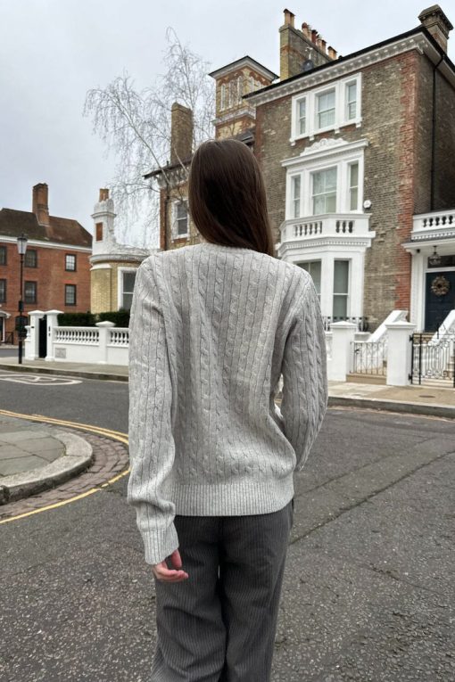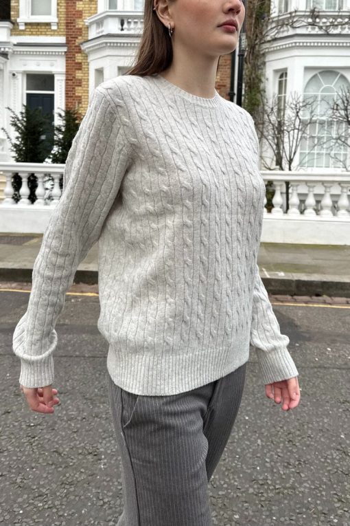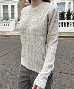 Classic, oversized, crewneck sweater in a heavy, cable knit with ribbed trim.Fabrics: 100% cotton Measurement: 25″ (64 cm) length, 22″ (56 cm) bust Made In: China