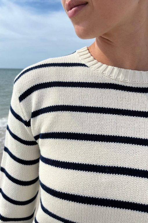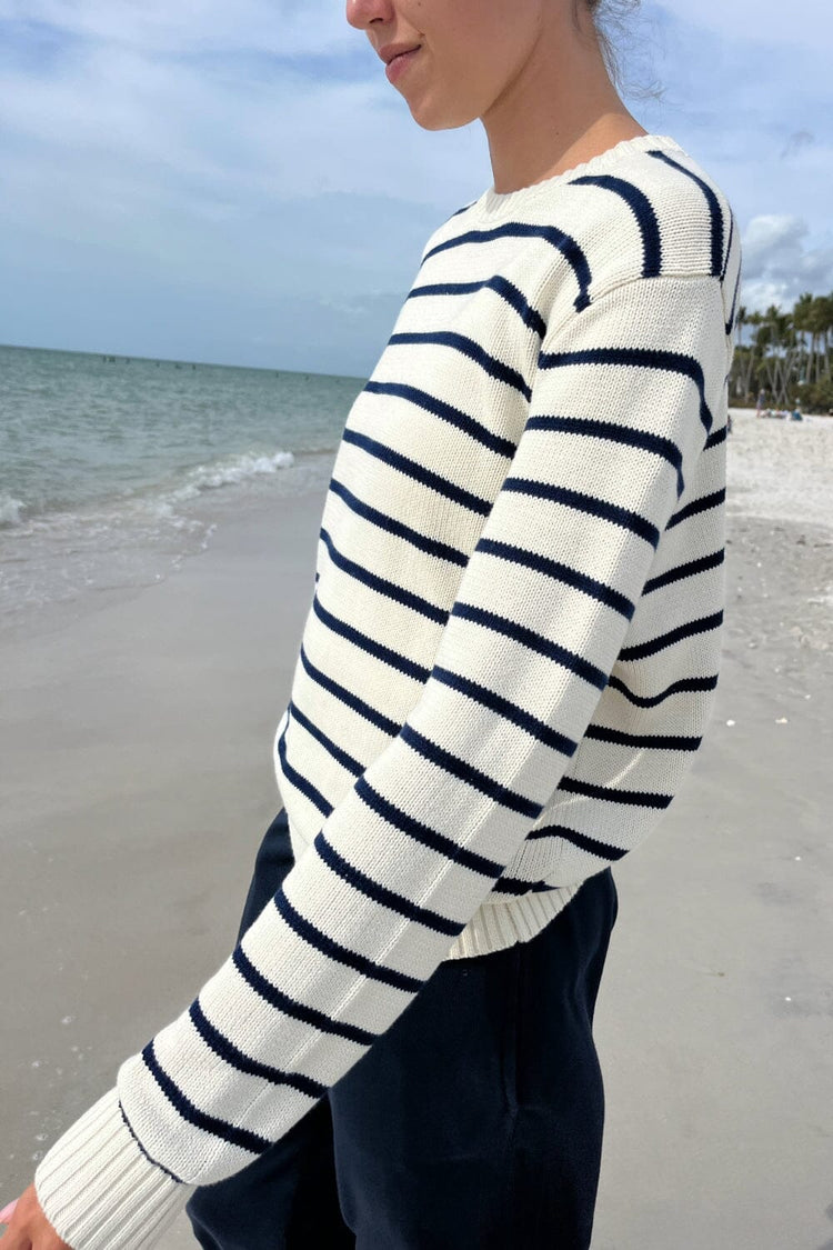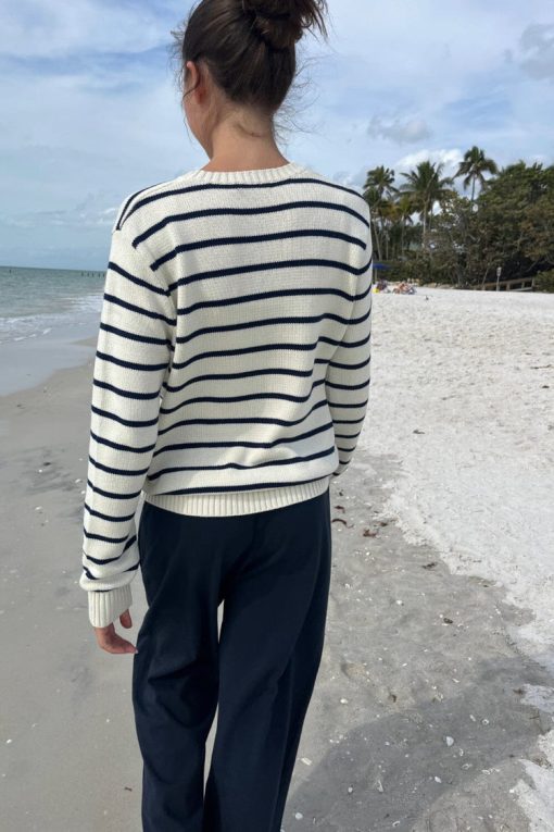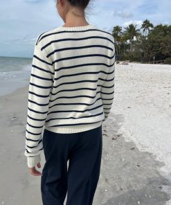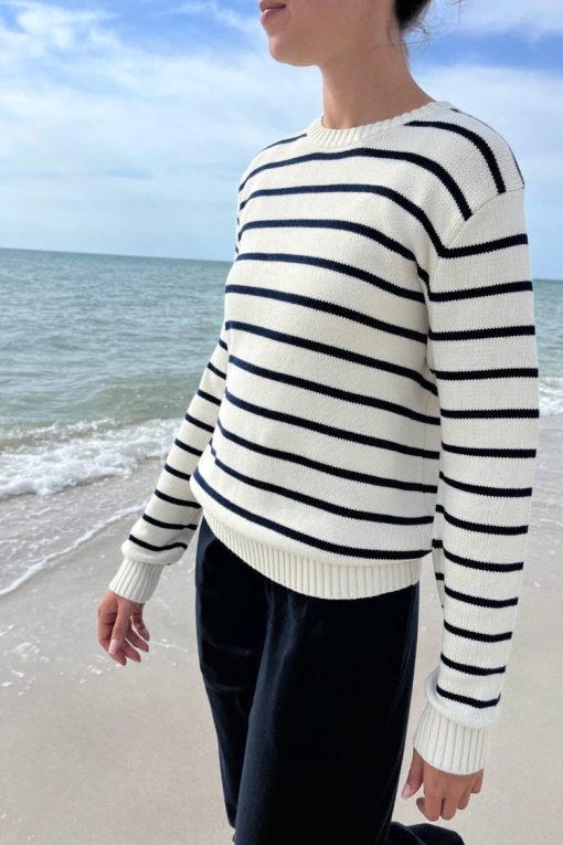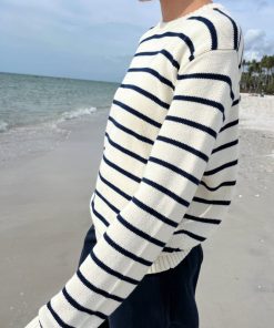 Be the first to review “Brandy Melville Women’s Martha Cotton Thin Stripe Sweater | Ivory With Navy Blue Stripes” Cancel reply