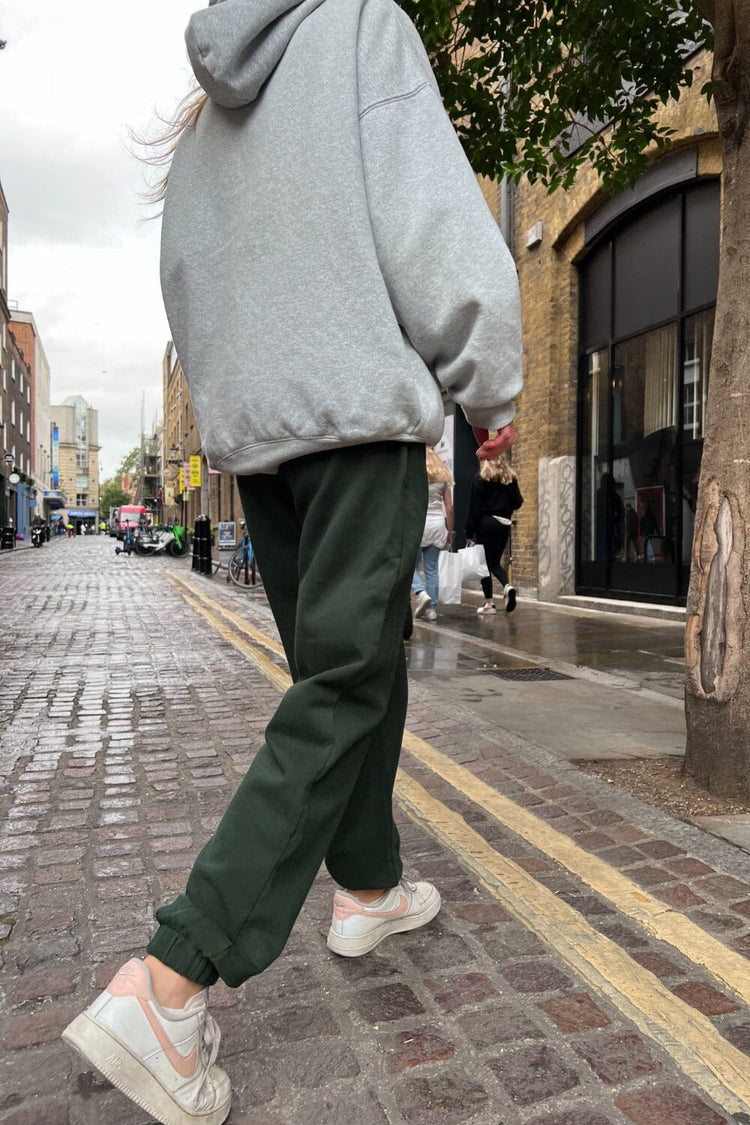 Thick and cozy cotton blend sweatpants with an elastic waistband, side pockets, and elastic cuffs. Fabrics: 82% cotton, 18% polyester Measurements: Waist 25″ (63.5 cm), rise 12″ (30.5 cm), inseam 31″ (79 cm) Made in: China