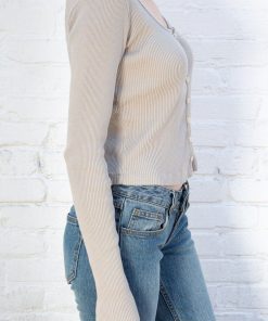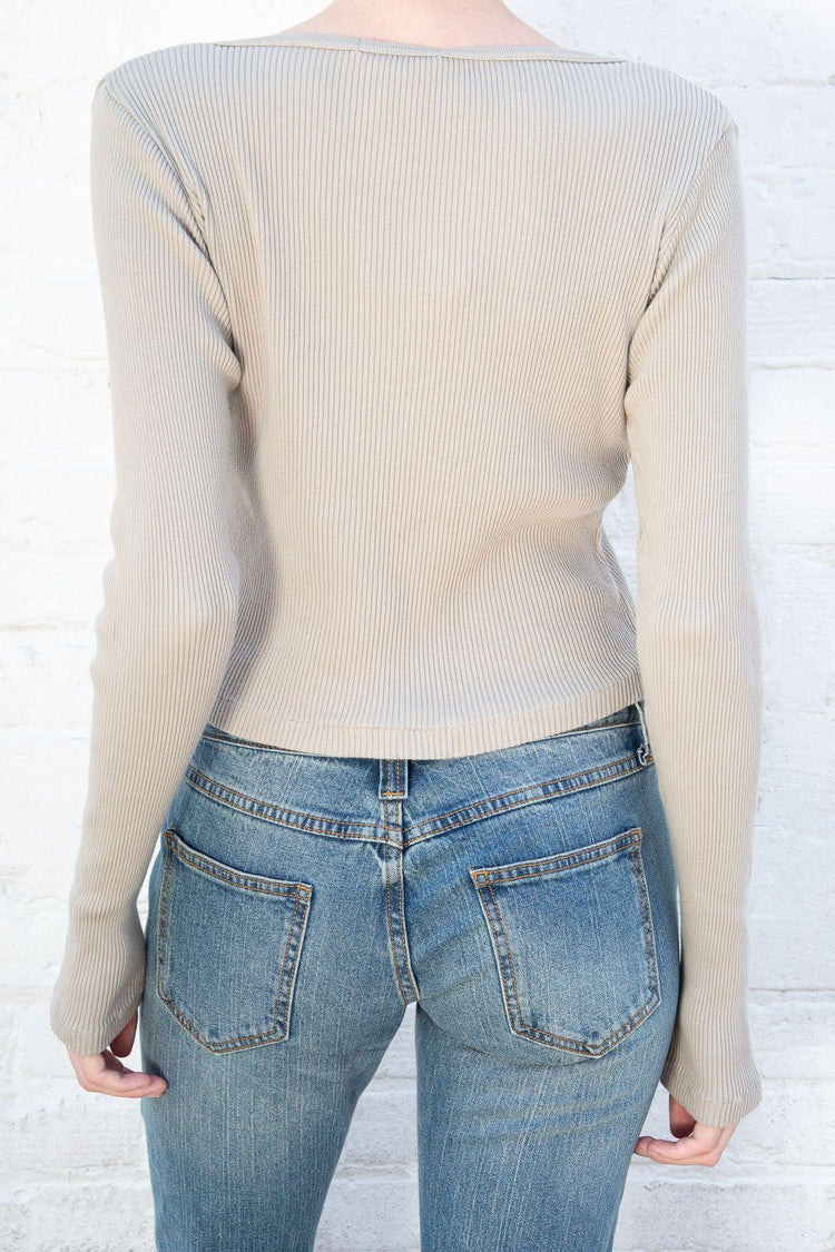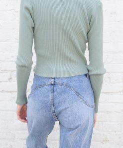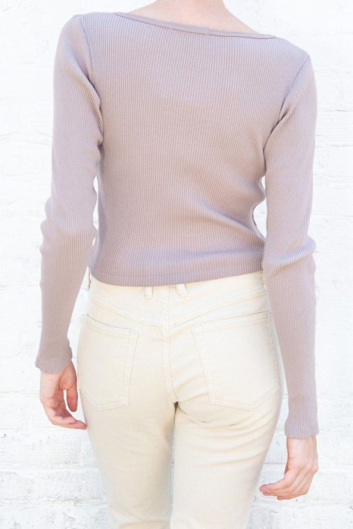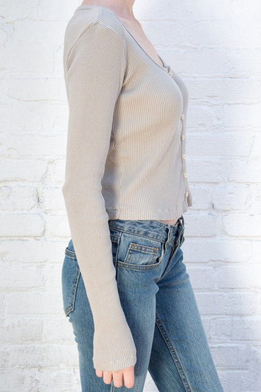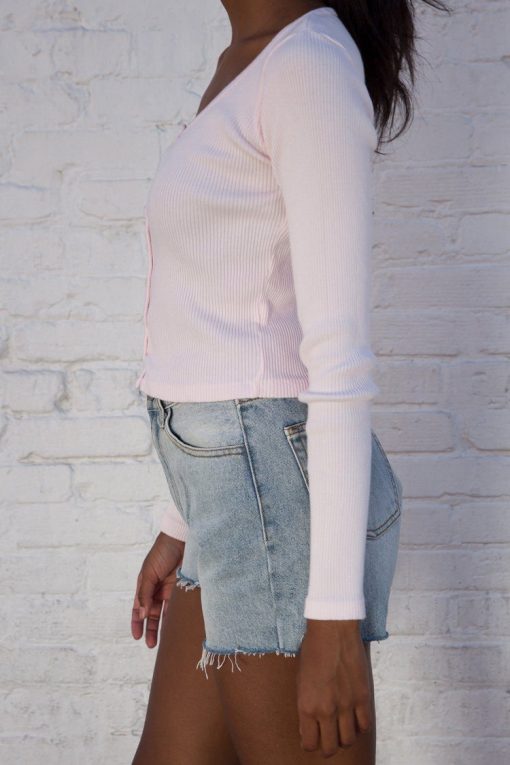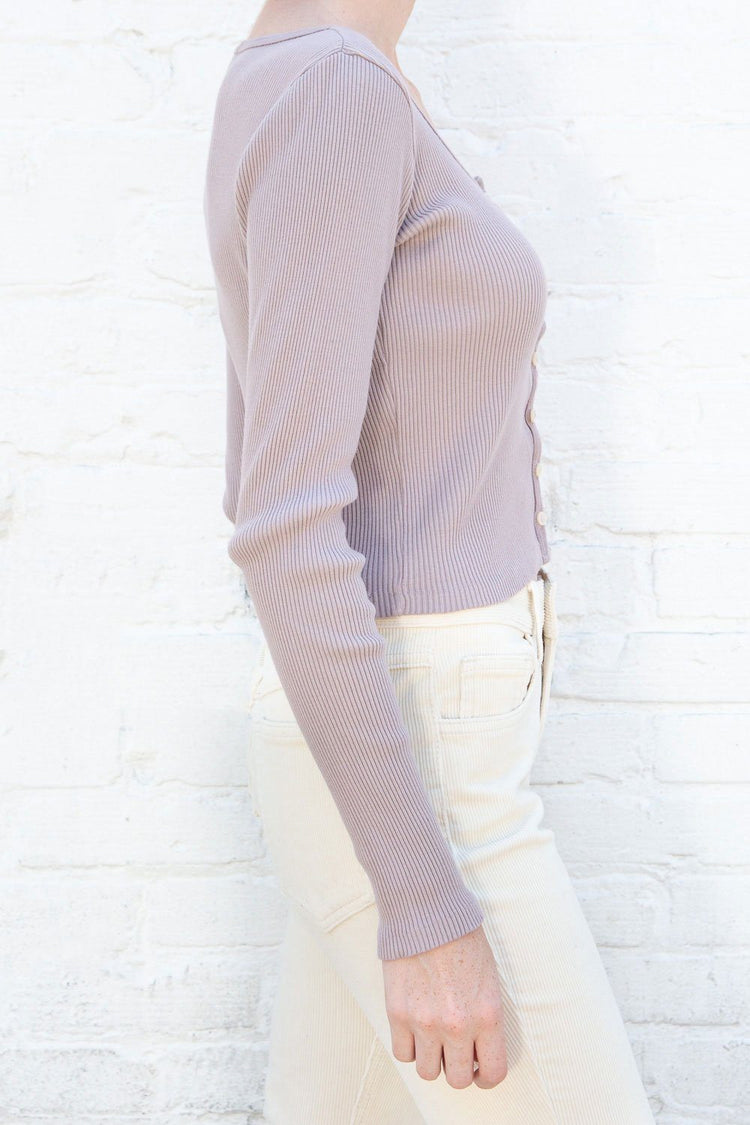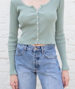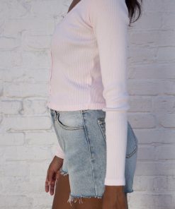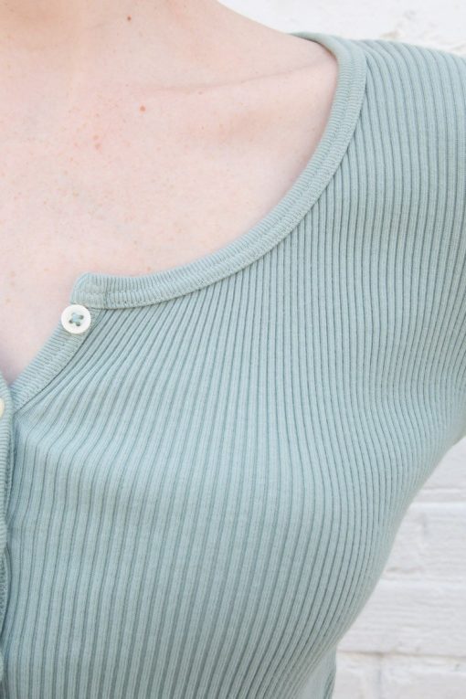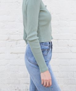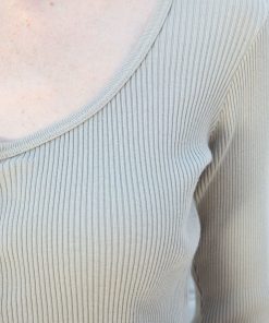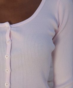 Fitted, ribbed crop top with long sleeves, a scoop neck and button closure.Fabrics: 100% cottonMeasurement: 16″ (41cm) length, 15″ (38cm) bustMade In: Italy